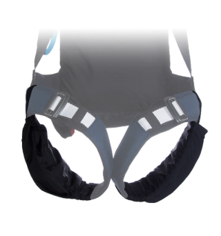 Additional storage for STREAM and CRUX series BASE harness container systems. Left side bag is an expandable lycra pouch, perfect for storing a rolled stashbag which is easily retrieved, quickdraw style. Right side is zipper-closed. These saddlebags are sold as a set of two, only. Color: Black.