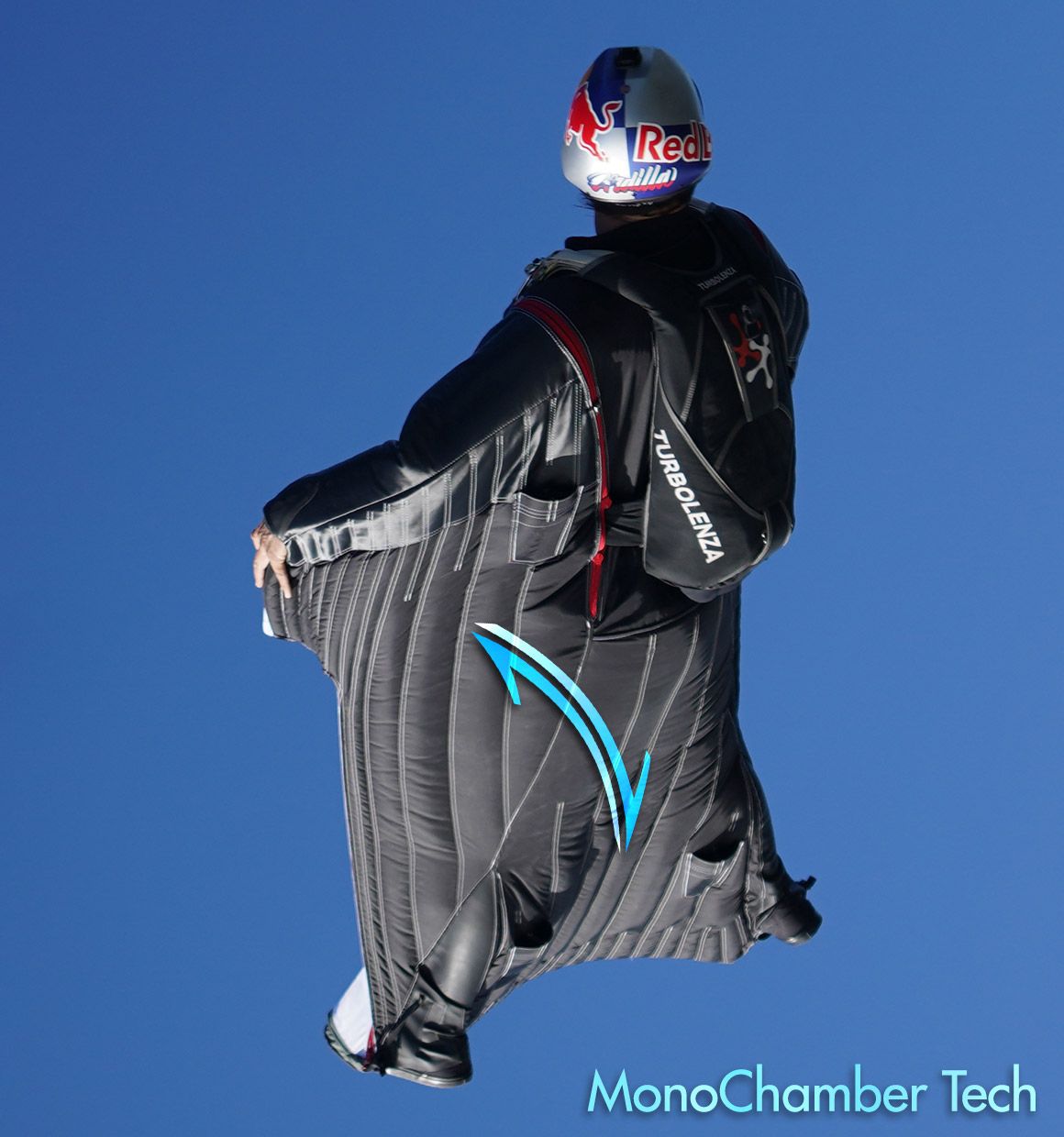 All parts of the arm and leg wings are fed from every inlet on the suit, for an excellent feeling of balance and consistency through maneuvers.